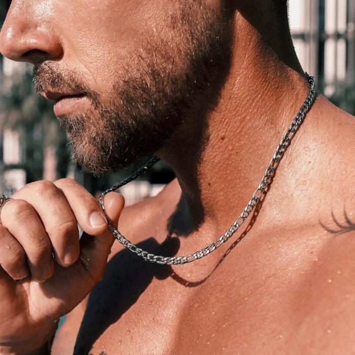 Wonderful Figaro Chain for Men or a woman of a width of 5mm and a length 60cmeters. The mesh Figaro is a classic that remains one of the most appreciated gifts. Composed of the same simple links as the horse mesh, the Figaro differs with the alternation of three small meshes between each elongated mesh. "Figaro mesh 1 + 3: combination of a large mesh and 3 small mesh "