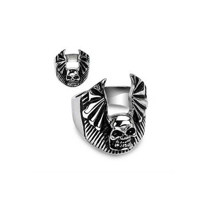 The machiavelic smile of this winged skull should convince you not to start over again. The steel of the ring will anchor to your finger for eternity. * demonic laugh * The inside of the ring is completely smooth, so marry the finger perfectly with sensation.