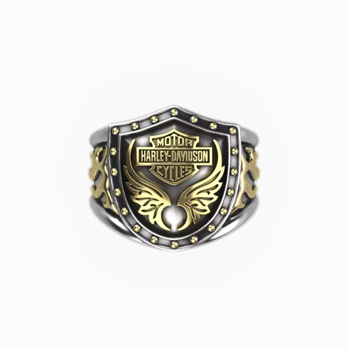 Harley Davidson Harliere Ring Man Steel Gold Fine - Biker Biker Style