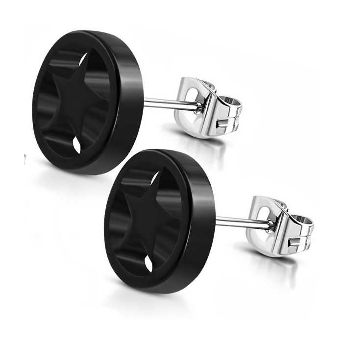 Pair of high-quality stainless steel earrings and a black acrylic watermelon in star shape. The holding of the right stem is secured by a butterfly fastening. A very class jewel offered at small price.