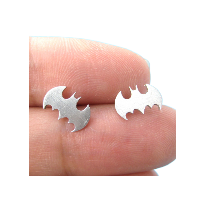 Pair of high-quality earrings made of stainless steel in the shape of a mouse bat like the famous batman. The holding of the right stem is secured by a butterfly fastening.