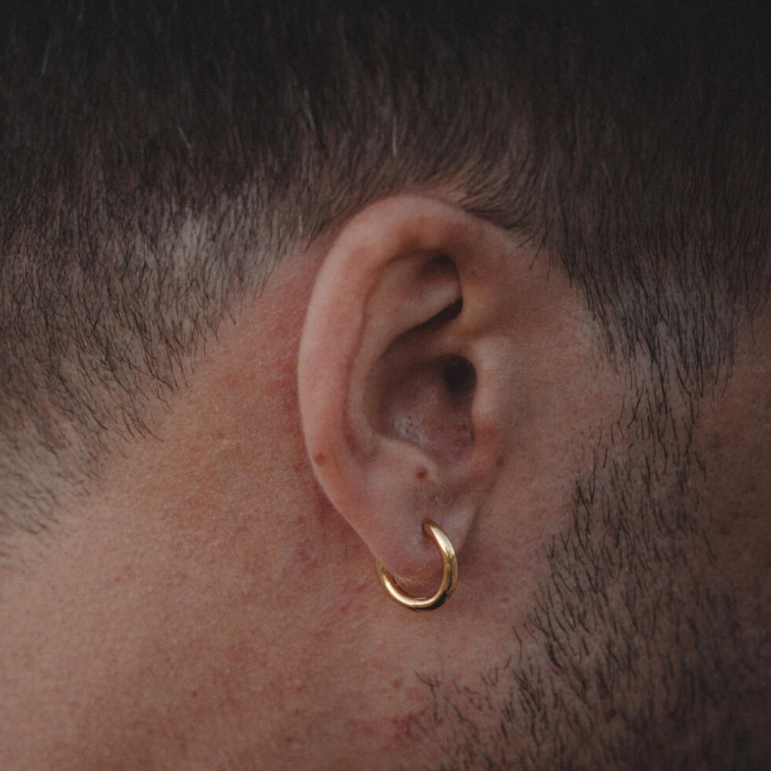 Discover these Fine earrings in Golden stainless steel with end gold, proposed to different diameter. A slightly arcuate rod connects the two thick rings, segmented in two. They close by simply pressing the fingers on the stem which facilitates the installation and ensures reliability to the jewel. These Male earrings At first glance, can quite suit a woman. Sober earrings and and Timeless will get married with all the looks, the most classic at the most pointed.