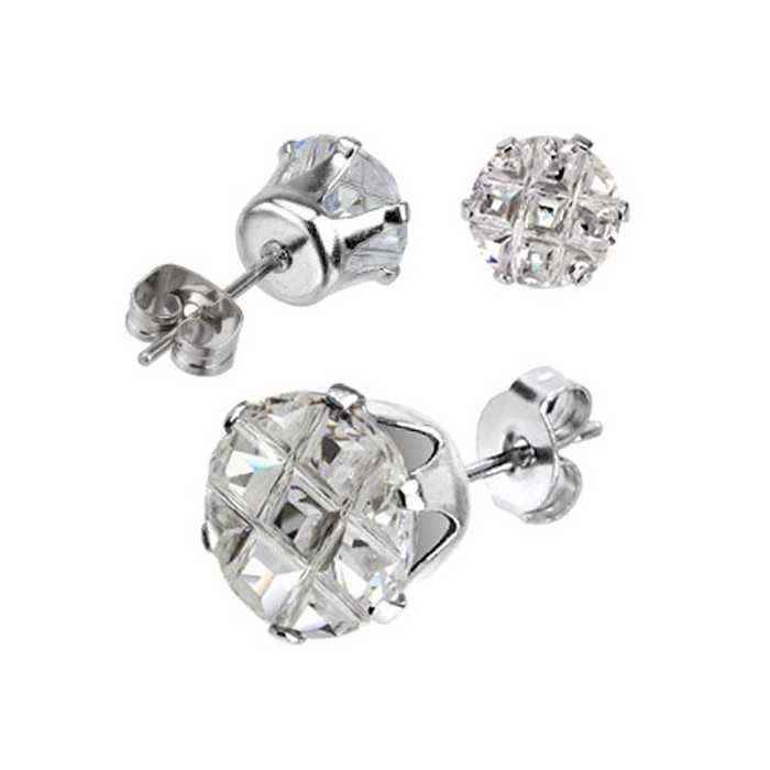 This pair of pierced earrings is worthy of the greatest jewels. Mounted on a tulip kitten with 6 claws, the large translucent synthetic stone, cut in relief, available in a choice of three sizes, is of incomparable brilliance.