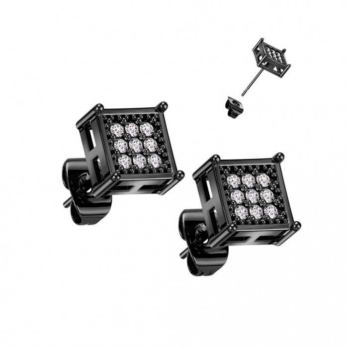 This pair of earrings is made of black-colored stainless steel and decorated with clear zirconium stones that will make sensation with your surroundings. Square shape, these earrings offer a chic look for men who want a class look or bling bling. They will be perfect for all those who want to put a little bling in their lives, without doing so excessively. At the minimum price is added the quality and safety of not losing this jewel with an adjustable pushchair.