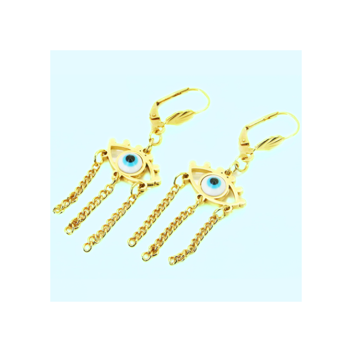 Discover these marvellous gold gold gold gold gold earrings with three chains suspended to a colourful protective eye tied in cheerful pampille. Refined and elegant, these earrings will protect you from negative energies like a talisman. These earrings have a dormant clasp with a retractable attachment in the back that avoids loss.