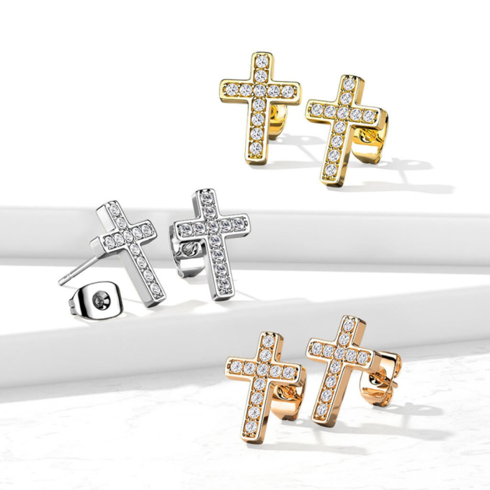 Complete your look with these beautifully sparkling Latin cross-shaped earrings thanks to round zirconium stones set. Designed in stainless steel, these particularly feminine earrings are noticed by its symbolism, but also by its quality, its glitter and its structure. For some, the cross is a symbol that has meaning, for others, it's just for fashion, but what is sure is that the jewels in the form of cross are very popular and indemodible. Chic and religious at the same time, these earrings will certainly embellish you. These earrings are equipped with a secure butterfly clasp that fixes a simple gesture.