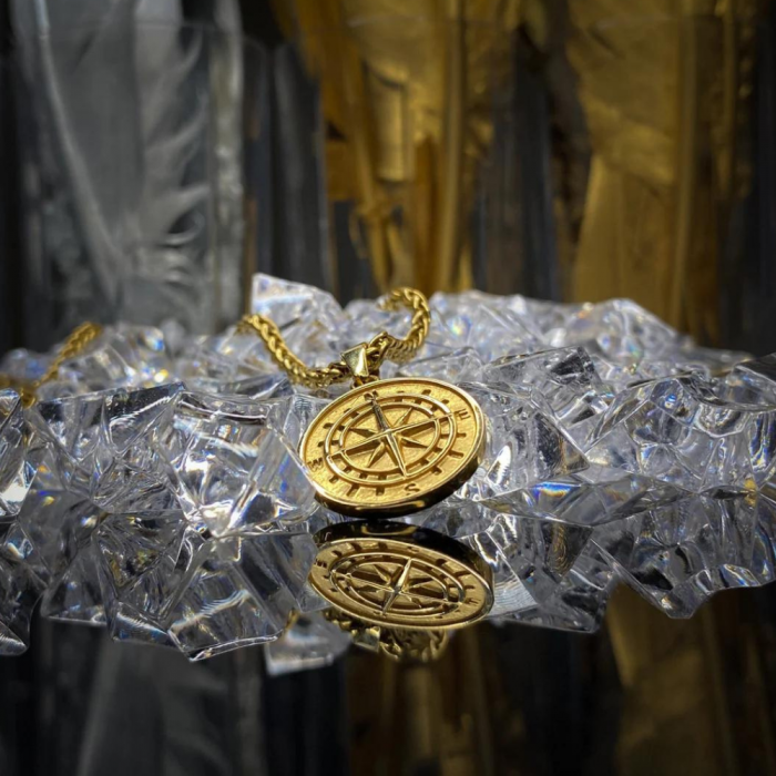 - A round and detailed compass pendant