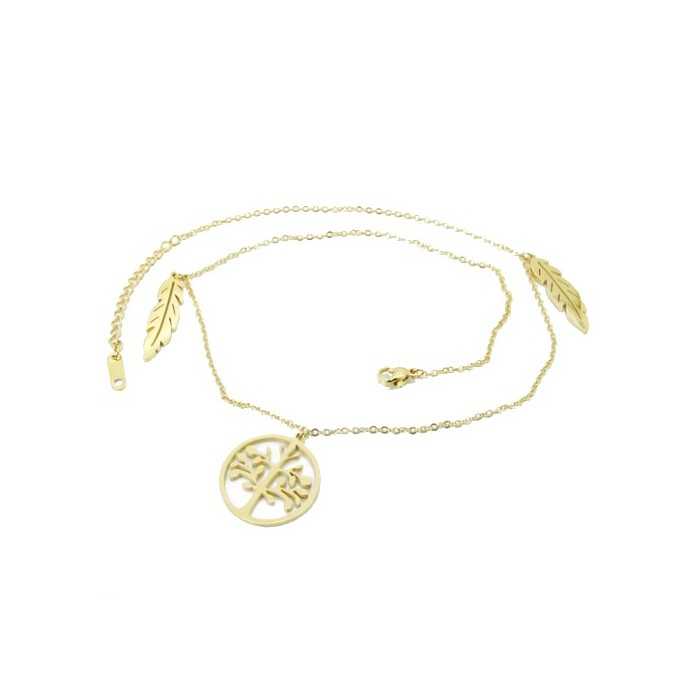Women's fine chain adornment adorned with feathers, gold steel tree of life pendant