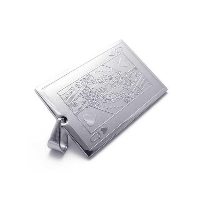 Men's women's stainless steel pendant card fan poker lady of hearts