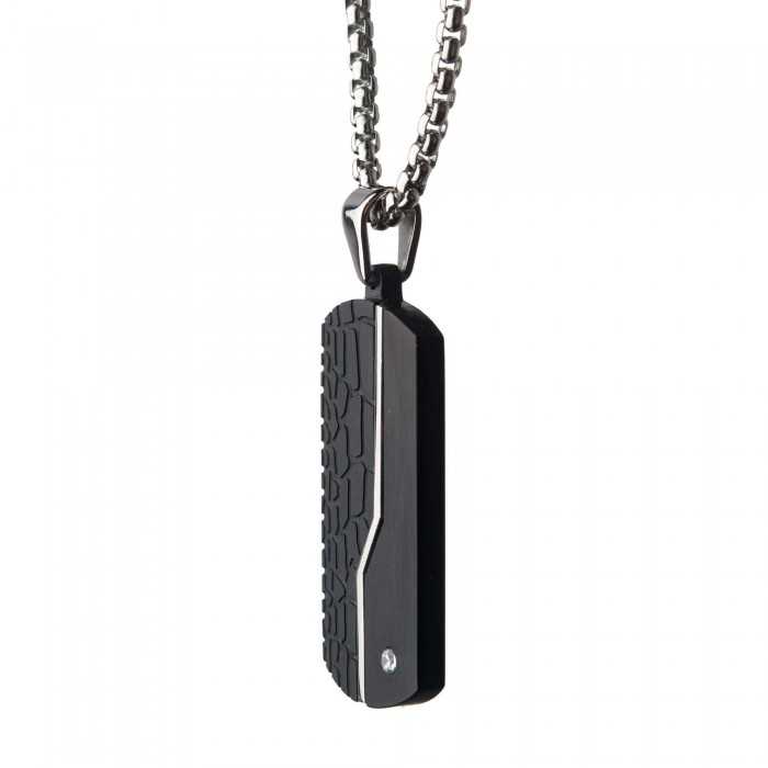 Rectangular military plate pendant in black stainless steel dividing in two parts, one is cracked and the other embroidered with an incrusted zircon giving it elegance and refinement.