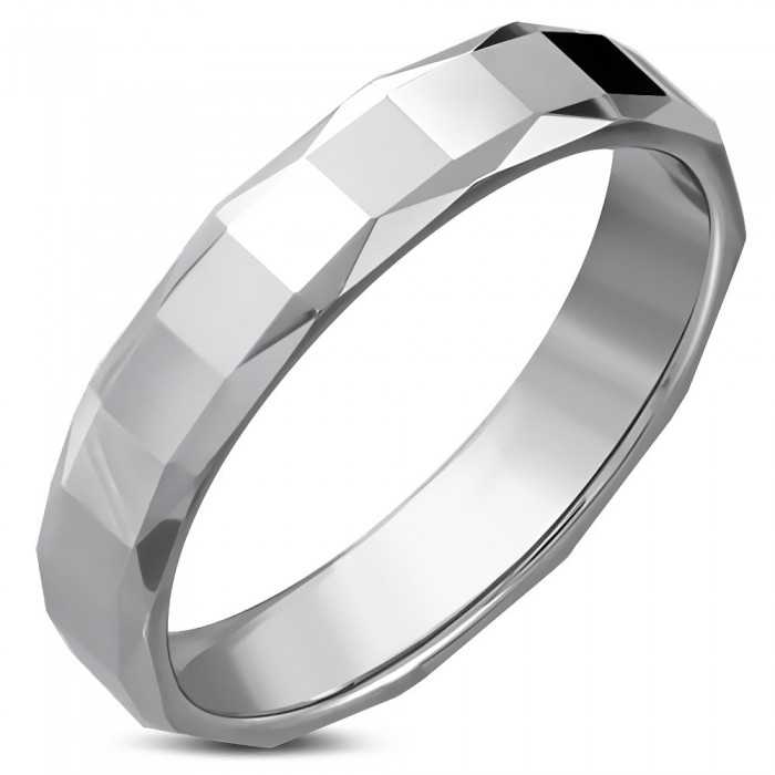 Wonderful ring made of high-end tungsten carbide that presents bevelled edges in losanges. The watermarked rectangles and the finesse of the borough make this ring an undeniably elegant charm.