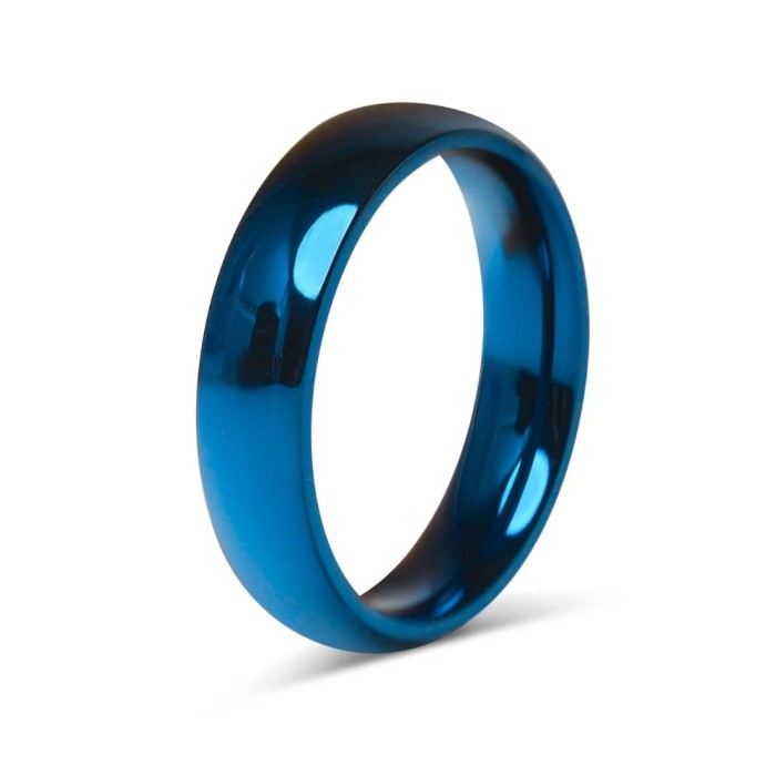 Blue engagement ring Woman in Stainless Steel Finish Mate Brossée 6mm Alliance Customized