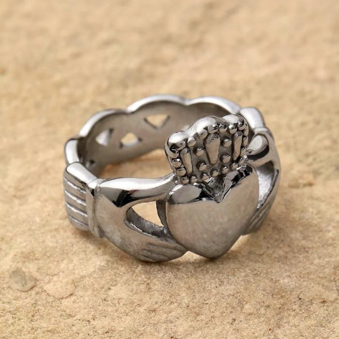 Irish Celtic Heart Wife Ring Claddagh Royal Crown Silver Steel