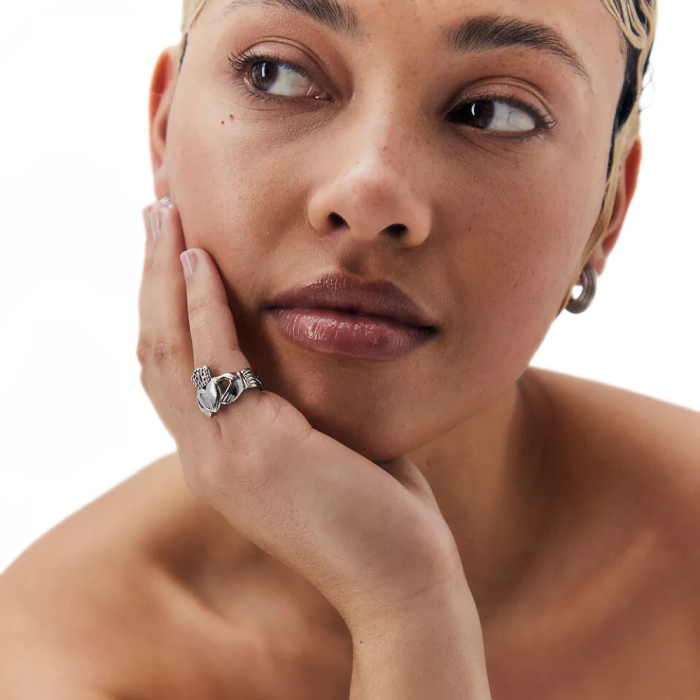 CLADDAGH RING WOMAN CELTIC IRISH CHETER - RING ROYAL CRONNE SILVER