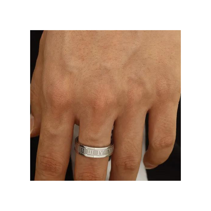 Men's and women's steel rings with Roman numerals in relief engraving