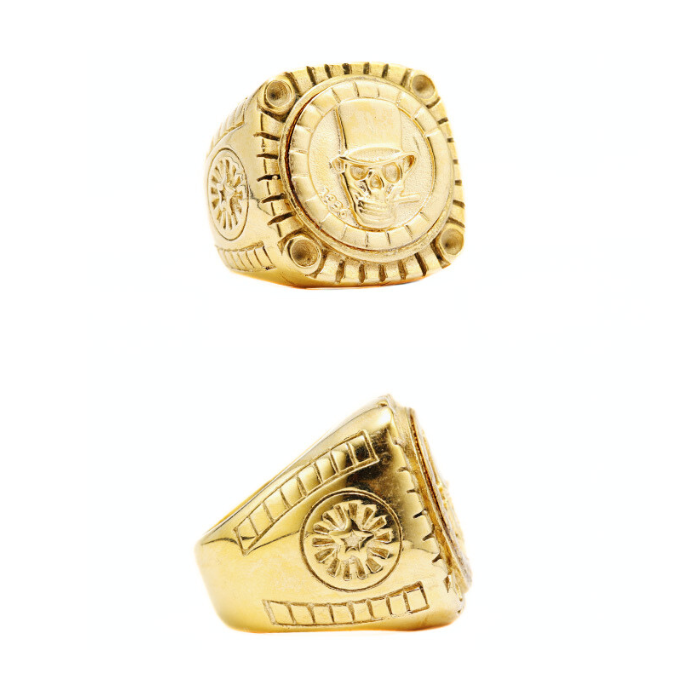 We are proud to present a creation signed ManBijoux in limited series. This imposing ring and exceptional will make more than one. Designed in gold gold gold stainless steel, this big gold ring presents in detail in all its splendor a magnificent head of death sculpted in relief smoking a cigar surmounted on a round tray. This highlights the 3D effect of the jewel.