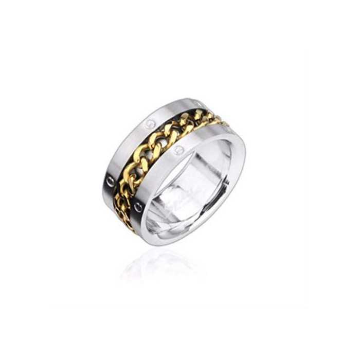 Large ring for men, made of stainless steel, with a gold plated string running through the ring. The inside of the ring is completely smooth, so marry the finger perfectly with sensation.