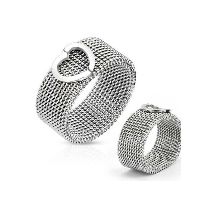 Ring for woman or teenager all made of steel mesh with a heart on top.