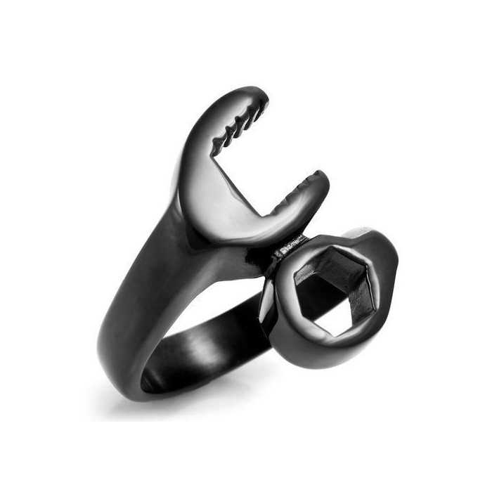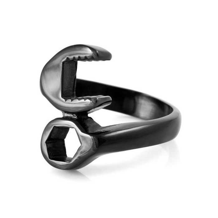 Men's 3-ring stainless steel and black plated mechanical design ring
