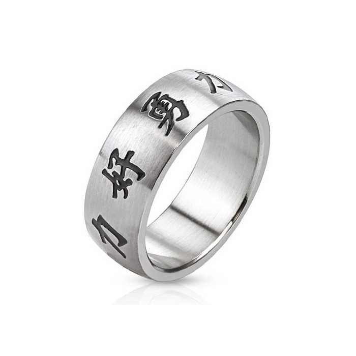 This ring is wide, thick in steel with Chinese characters meaning: love, courage and strength. This ring is ideal to offer or offer for lovers of China!!!