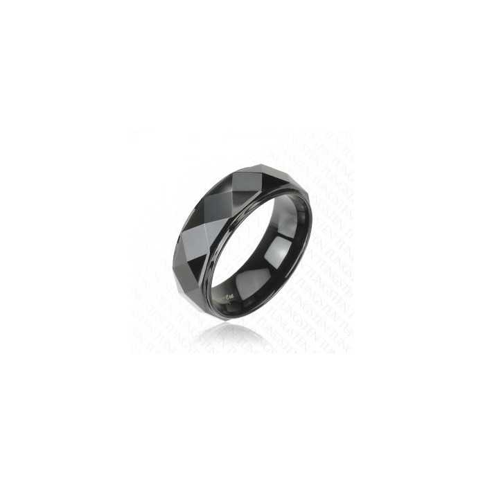 Black Diamond Faceted Solid Tungsten Men's Band Ring