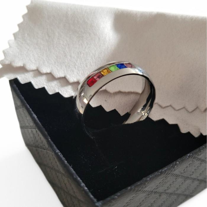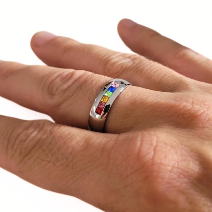 Ring Alliance Female Man LGBT Steel - Rainbow Stones & Engraving