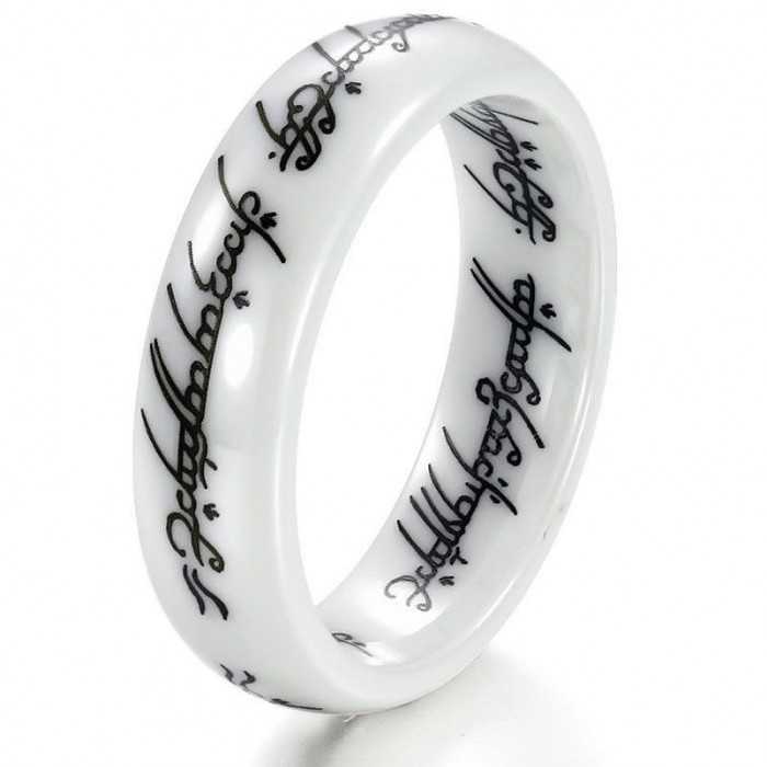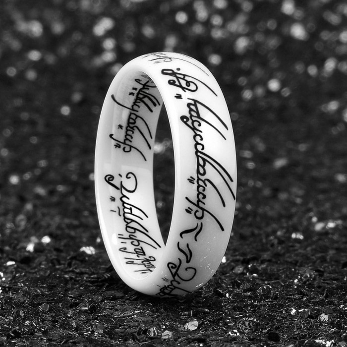Wear the power of the unique ring with a touch of light purity! Discover this beautiful Mixed White High-Tech Ceramic Ring, original and unexpected replica of the famous single ring of the trilogy The lord of the rings.