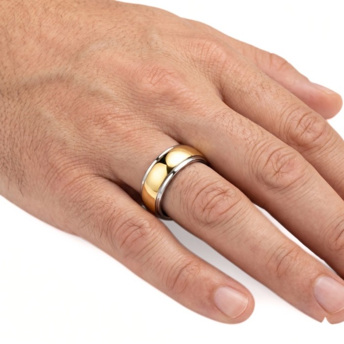 The main attraction of this alliance is based on its perfectly balanced visual architecture. The ring reveals a beautiful Two-tone design (gold and silver) which subtly hangs the light without ever appearing ostentatious. The central part of the ring is sublimated by a bright and warm gold veneer, obtained by a high-tech ionization process. This golden strip is elegantly framed by two outdoor borders in gross titanium, finely beveled and polished silver mirror. This contrast "Gold and silver" is not only aesthetic, it is also extremely practical: it allows to easily match this ring to your other accessories daily, whether it is a silver steel watch, a golden gourmet, or the alliance of your half, creating a perfect harmony of couple.