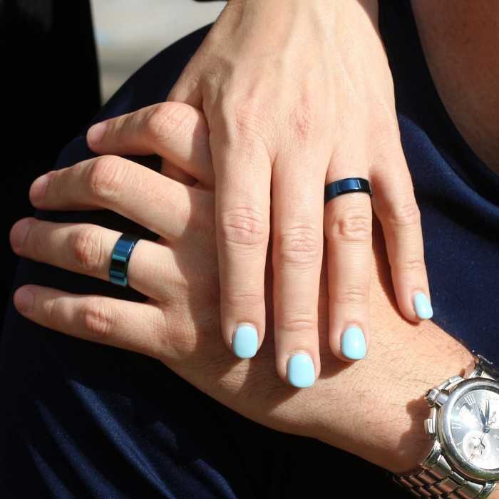 Engagement Ring Woman Men Couple Stainless Steel Color Blue 6mm - Ring Customizable