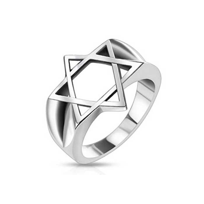 Magnificent ring made in high quality polished stainless steel forming a david star. Although modernized, David's cross does not lose anything of its symbolism by being highlighted by the material used.