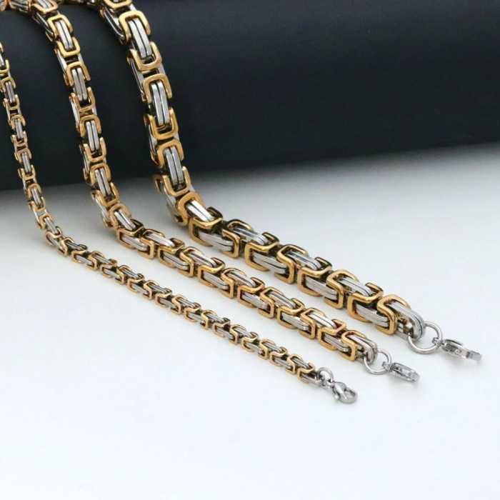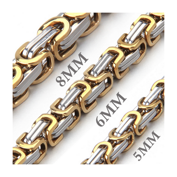 El malla bizantina libera un encanto vintage atemporal con sus complejas conexiones entrelazadas y un diseño sofisticado. Made oro oro oro oro acero inoxidable el trim bicolor bizantino destaca una estética clásica que combina durabilidad y conocimientos refinados. Perfecto para aquellos que aprecian el estilo inspirado en el patrimonio o estilo emperador hombre adorno es una declaración de elegancia duradera y arte único.