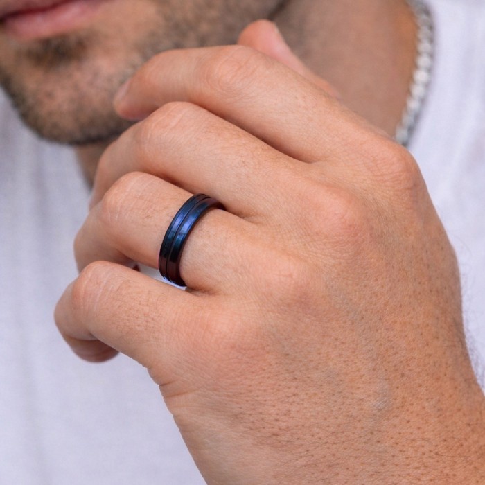 Anillo de hombre Groove de acero inoxidable Banda central Color azul