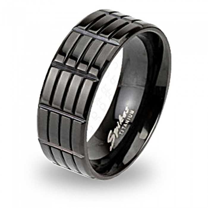 Anillo de hombre de titanio bañado en negro con 3 líneas incrustadas