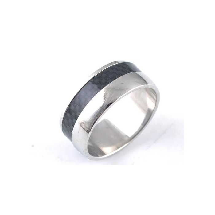 Hermoso anillo de hombre de acero y cinta negra de fibra de carbono.