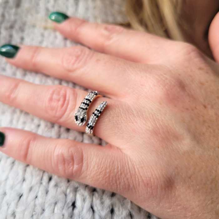 Diseñado en forma de serpiente, es el anillo de una mujer que sin duda hará celos a su alrededor. Hecho de acero inoxidable dorado, esto mujer dorada anillo combina elegancia, misterio y seducción. Este anillo está decorado con cristales brillantes, cautivando la mirada con su diseño refinado y lujoso.