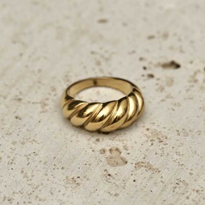 Escalada de oro Anillo de la cúpula - Anillo de Crescencia Femenina Torsaded en acero inoxidable dorado