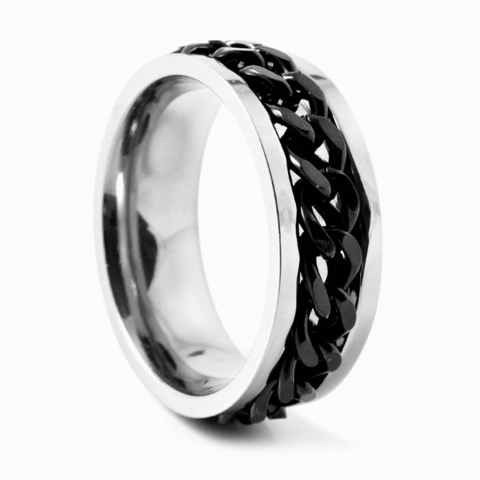 Anillo de anillo de mujer de compromiso o hombre en acero con cadena antiestrés