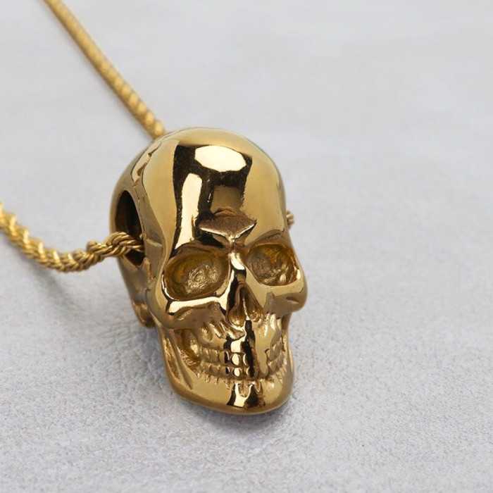 Diseñado oro oro oro oro acero inoxidable colgante de cráneo de oro está divinamente representado con detalles limpios, que atraerán la atención a primera vista. Usted estará inmediatamente bajo el encanto de este colgante a través de la riqueza de los detalles que lo componen. El jefe de la muerte está en relieve y es muy realista. Uno biker colgante a símbolo atemporal de fuerza, libertad y misterio. Finamente tallado, cada detalle del cráneo se trabaja cuidadosamente para una representación realista y artística. Que amas rock, gótico o simplemente buscando una joya que tiene carácter, esto cabeza de colgante de muerte está hecho para ti.