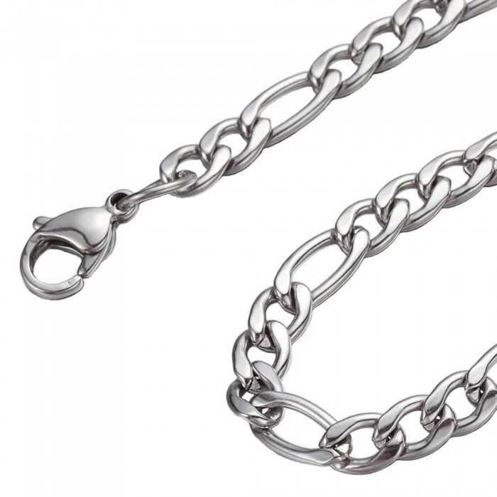 Magnífica cadena de malla figaro para hombre de 7 mm de ancho (disponible en 50cm y 55cm de largo). La malla Figaro es un clásico que sigue siendo uno de los regalos más apreciados. Compuesta por los mismos eslabones simples que la malla de caballo, la figaro se distingue por la alternancia de tres pequeñas mallas entre cada malla alargada. Malla Figaro 1+3: combinación de una malla grande y 3 malla pequeñas.
