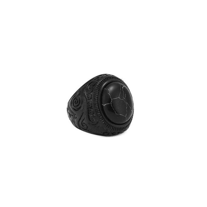 Anillo de sello para hombre en acero tribal color plata y ojo de tigre