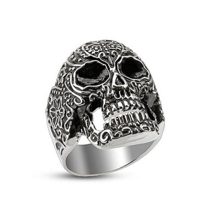 Anillo hombre de acero cabeza de la muerte con motivos arabescos!