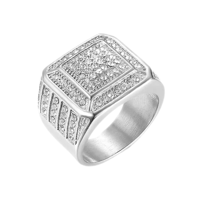 Descubrir esto Caballero de plata A las sofisticadas piedras de diseño en óxido de circonio brillantemente lo que le da un aire imponente. Diseñado en acero inoxidable, esto pivote informe cuadrado está maravillosamente decorado en Pavimento de diamantes falsos Oxido de circonio cuidadosamente establecido en el material. Una anillo de hombre Lo que se armonizará con todos los estilos de vestir refinados. Ella se sublimará la mano casándome con el dedo a la perfección y con un toque de carácter a su look.