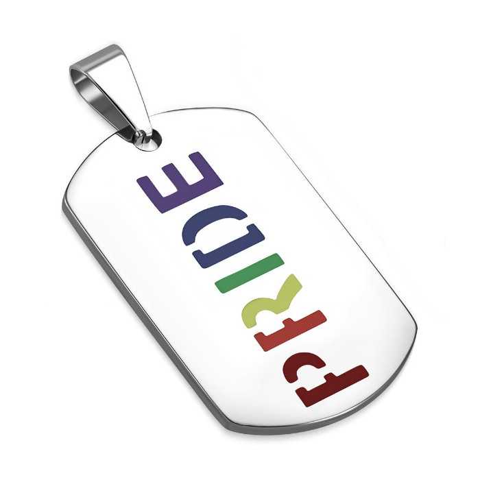 Esto lGBTQI+ placa militar está decorado con la palabra "PRIDE" de color arco iris para homosexuales, bisexuales, queer, transgénero u otras personas con el fin de reclamar libertad, igualdad y mostrar orgullo. Una joya que es verdaderamente única.