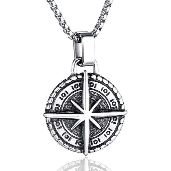 Collar colgante brújula estrella rosa vientos afortunados felicidad acero hombre