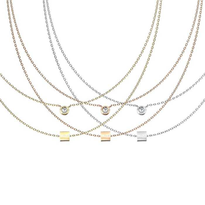 Mujer Collar Varias Hileras Cube Love Diamante Sintético Acero Oro Rosa Plata
