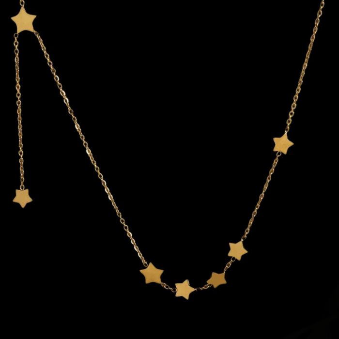 Te enamorarás de esto fino collar con encantos estrella dentro acero de la color oro a 'oro final con encanto encantos en forma de estrella quién bailar con cada movimiento. Esto collar de estrellas refinado se distingue por su delicada cadena fina. Esto star padlock collar es un odo de feminidad y naturaleza. Un cierre de tipo carabiner fuerte facilita su instalación al asegurarlo. Perfecto para todas las ocasiones, mejorará tu estilo y enciende tu traje.