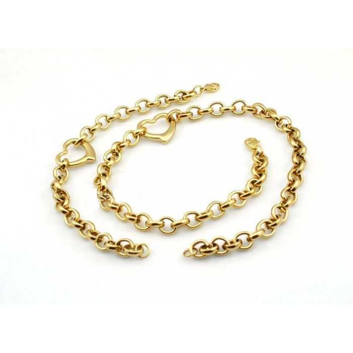 Brazalete + Cadena de malla rolo de 10 mm de ancho de oro de 18 quilates de alta calidad. Esta joya muy elegante tiene un cierre de mosquete seguro y discreto a la vez.