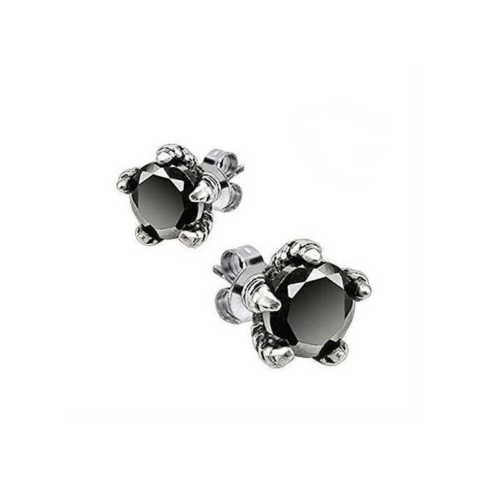Los galantes amantes de la joyería confirman su buen gusto con este espléndido par de uñas con cuatro garras que abrazan firmemente un hermoso zircón negro de facetas divinas, ligeramente curvado, con una superficie plana en la parte superior.