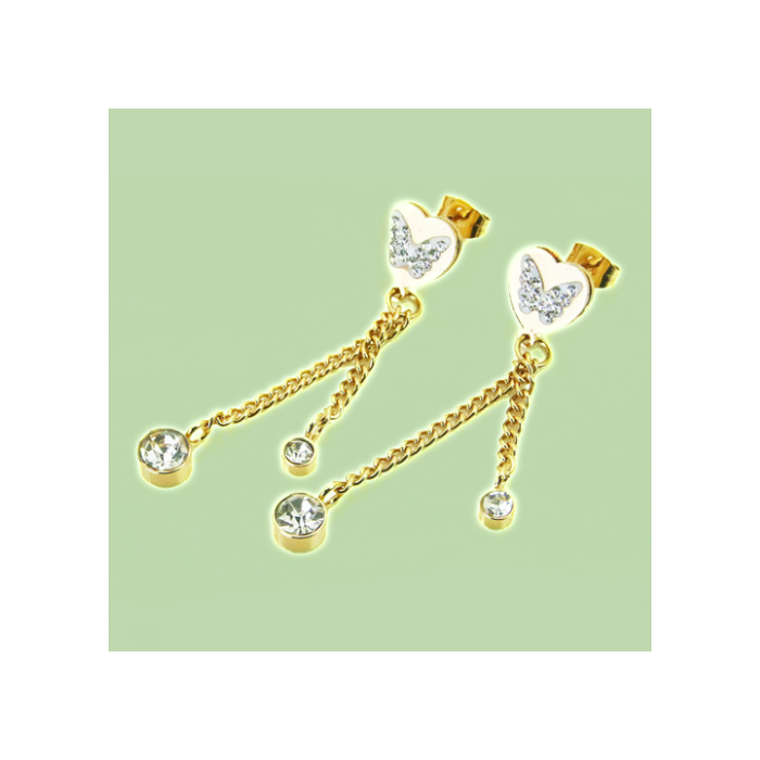 Femenino, refinado y brillante, estos Pendientes de cabeza de mariposa de acero dorado Son la joya perfecta para iluminar tu rostro y afirmar tu elegancia con sutileza.