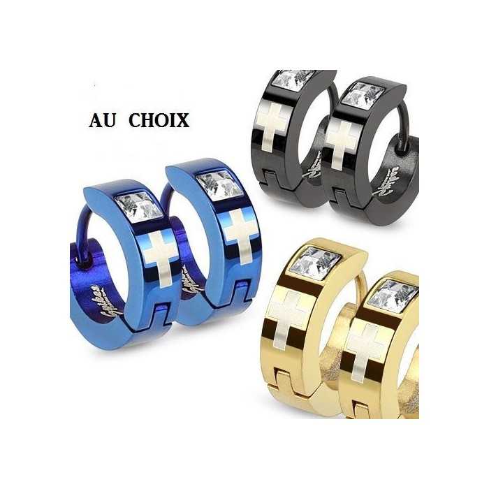 Disponible en 3 colores, este par de pendientes de acero inoxidable tiene todo para seducir. Estos criollos están adornados con una cruz blanca grabada con láser y una piedra blanca cuadrada insertada en el acero. Una vara, ligeramente arqueada, conecta los dos anillos gruesos, divididos en dos. Se cierran con sólo presionar los dedos sobre el bastón, lo que facilita la colocación y asegura la fiabilidad de la joya. Aretes de alta calidad, muy elegantes y originales a un bajo precio.